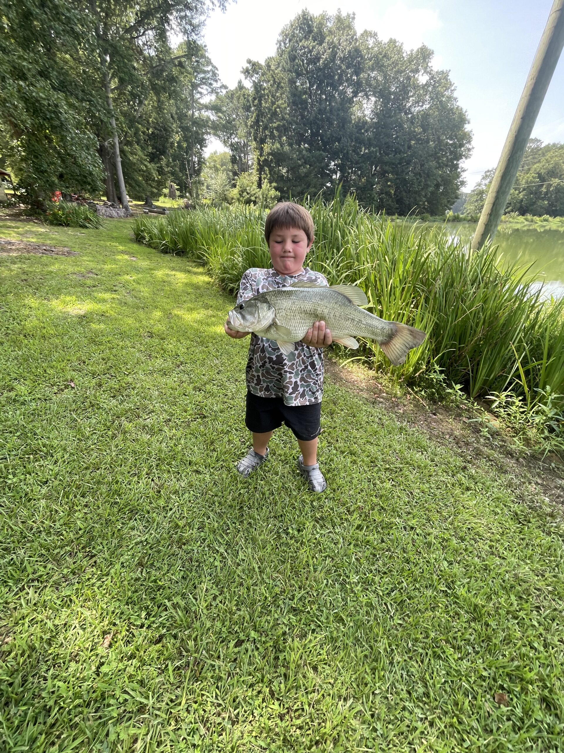 This is my son Holt’s personal best bass. He is 6 years old and caught this bass in a lake near our home in central Mississippi. Bass weighed in right at 8lbs.
