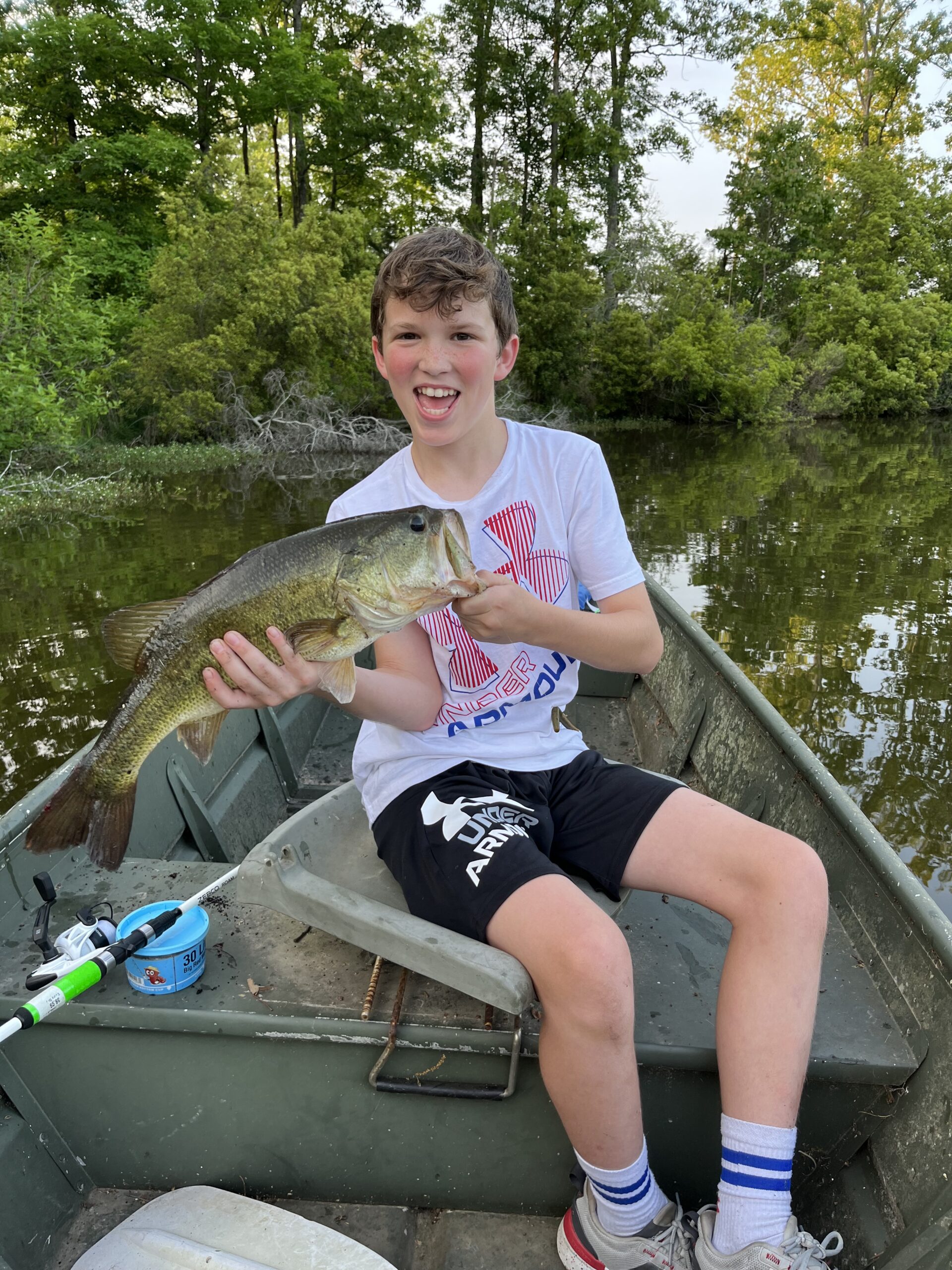 My grandson, Keaton Reeves, caught this in our neighborhood lake. His yell was drowned out by his grandfather’s!