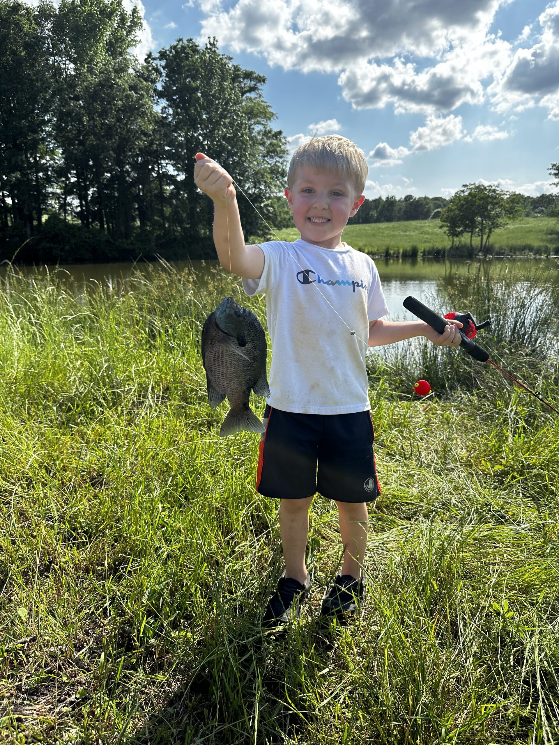 We have a small lake on some family land in Lena, MS that we take my son to fish all the time. He looked like he was fighting a marlin on a deep sea fishing trip fighting this blue gill with his little pole.