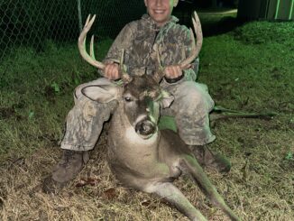 Easton and his mom were hunting and this buck came out. Easton is 9 years old and shot it with his bow. It’s the first time he’s harvested a deer with his bow!
