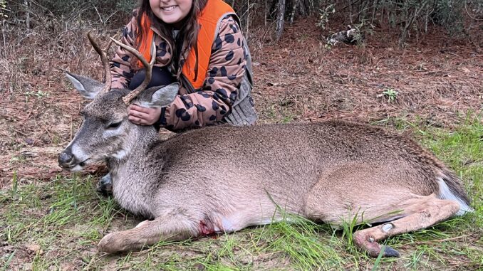 My daughter was able to take her first buck behind our house. She watched many does before he came out. Just waited and it paid off big time.